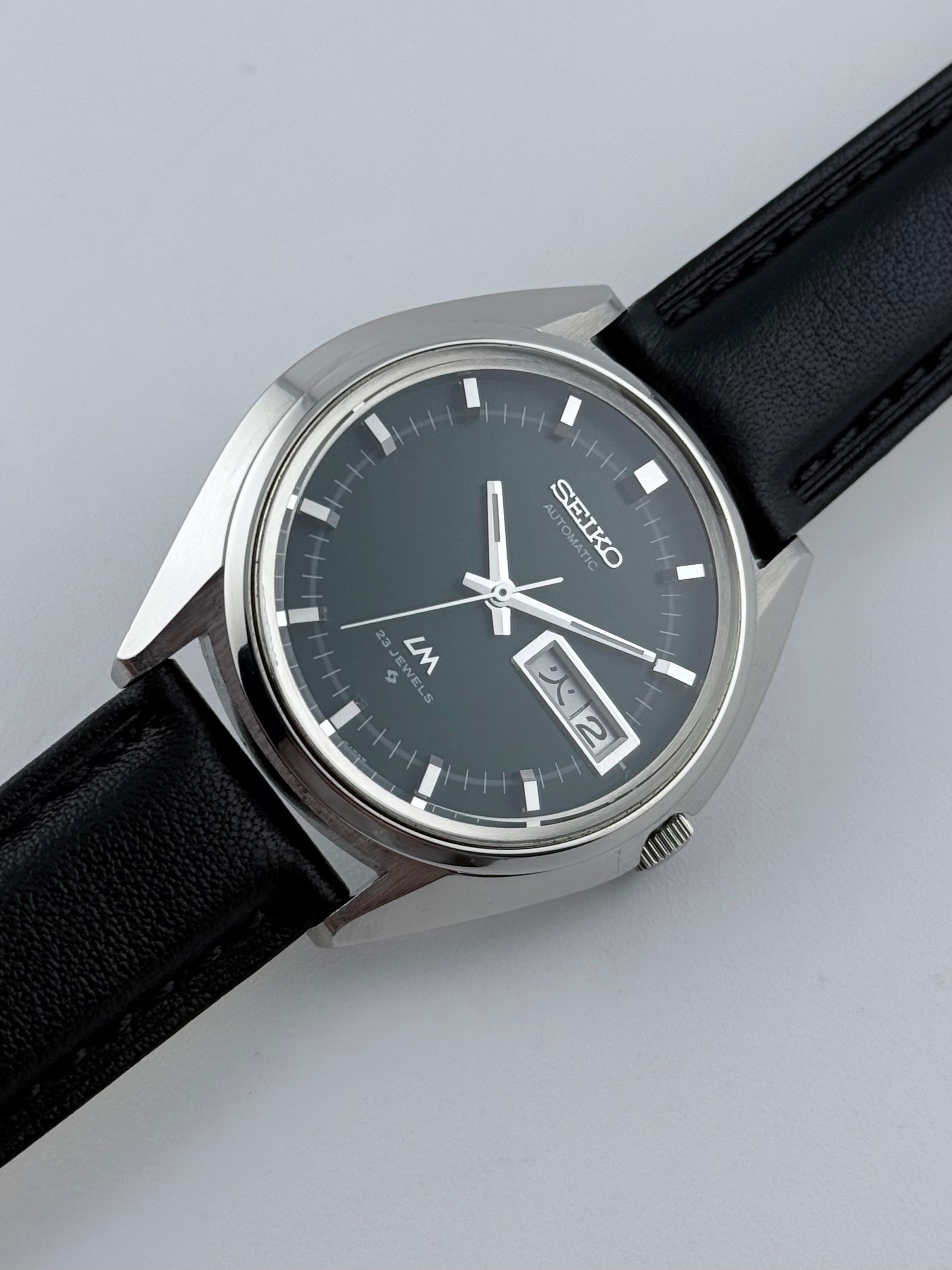 This is an absolutely stunning Seiko Automatic from the early 1970s, which features a beautiful green sunburst dial which displays a fully functional Japanese/English day-date and faceted markers. The watch is in fantastic condition and is fully working and keeping time.