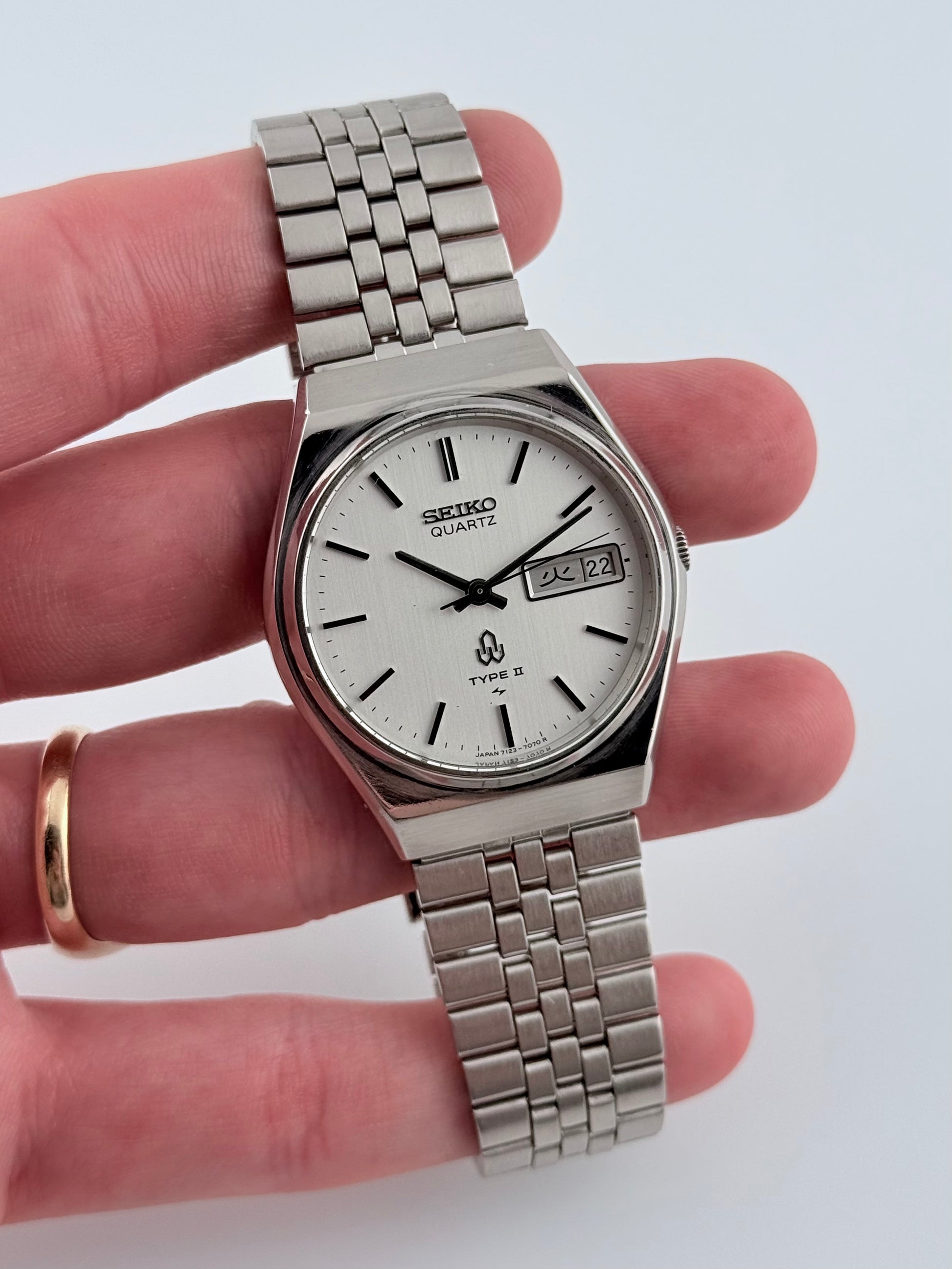 This watch is in excellent condition for its age. It features a lovely silver brushed dial along with a beautiful original bracelet. The watch incorporates a fully functional Japanese Day Date complication. The crystal is virtually mark free and the watch keeps excellent time.