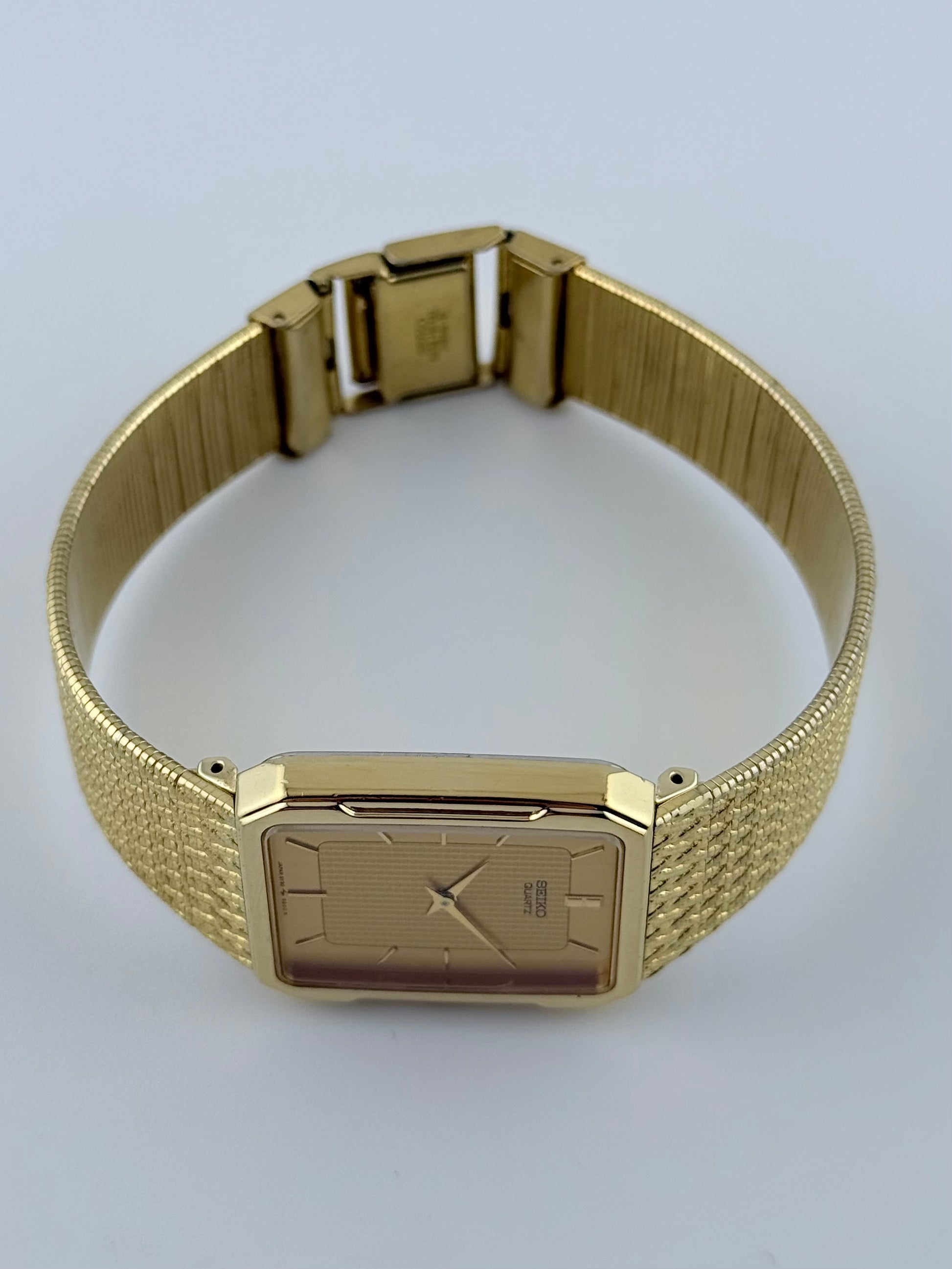 This lovely Seiko is in great condition for its age. This example features an absolutely stunning two tone dial with dauphine hands and an attractive case with faceted sides! The watch shows very little wear whatsoever all round. It works perfectly in all functions.