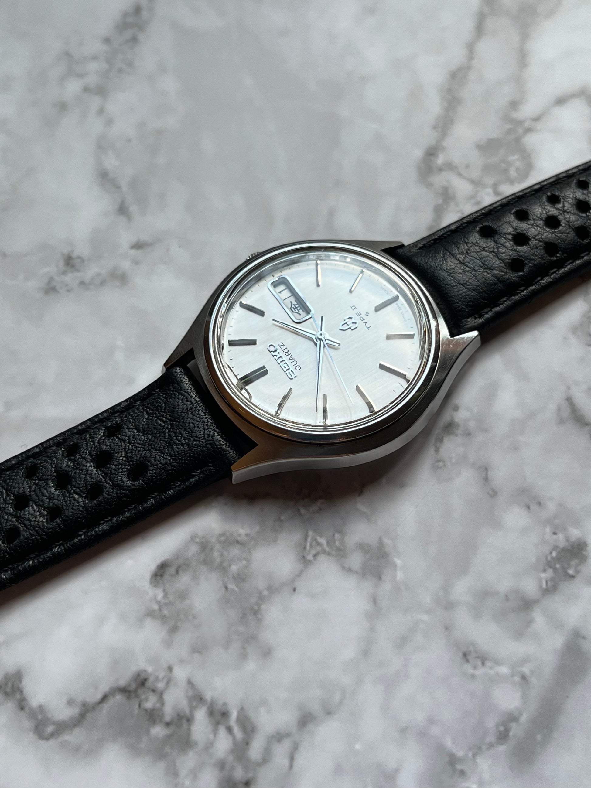 This is a beautiful JDM Seiko Type 2 Quartz which features a beautiful silver sunburst dial that displays a fully functional English/Japanese day-date. The watch is in overall very good condition as can be seen by the pictures. It is also fully functional mechanically!