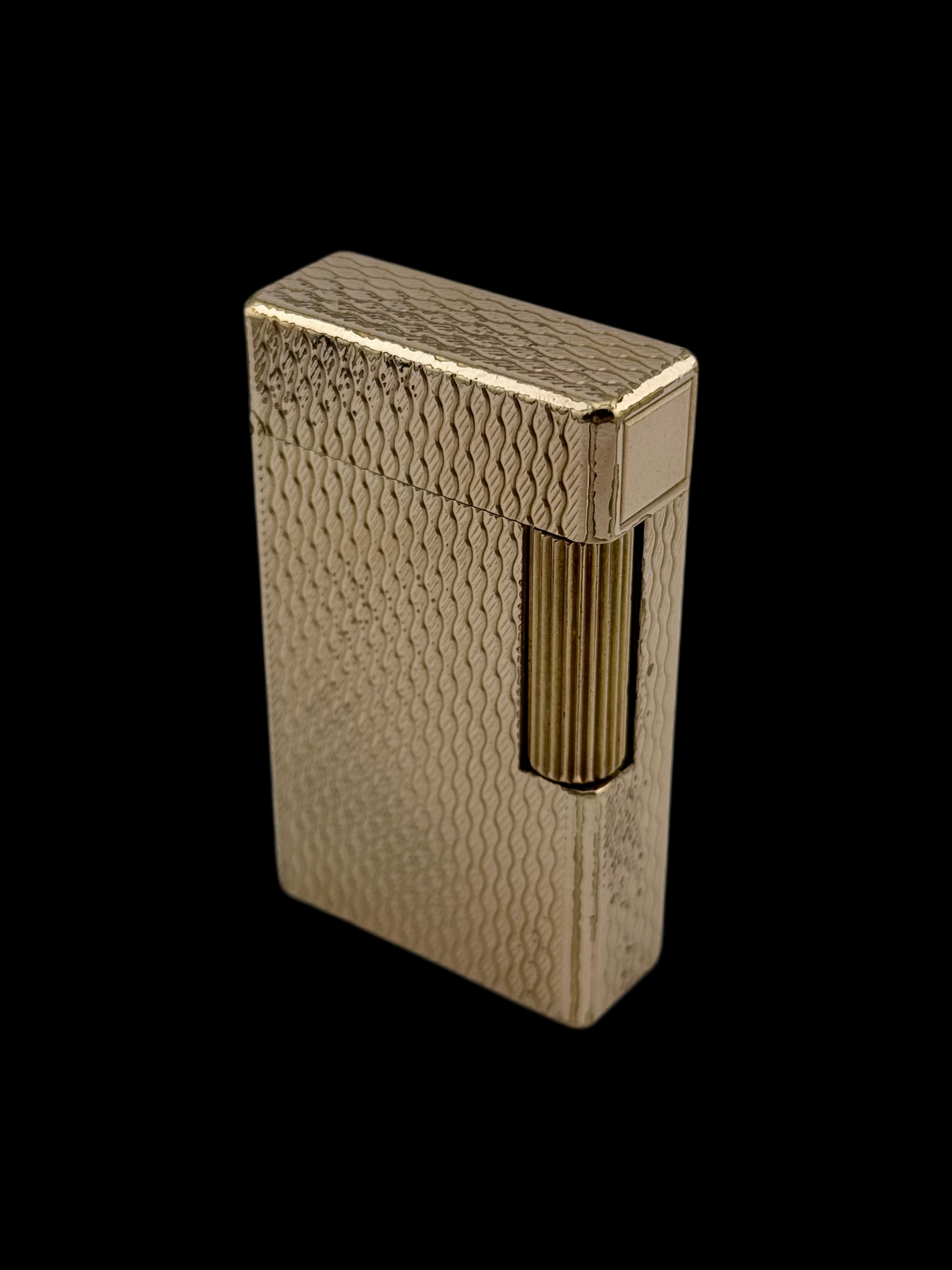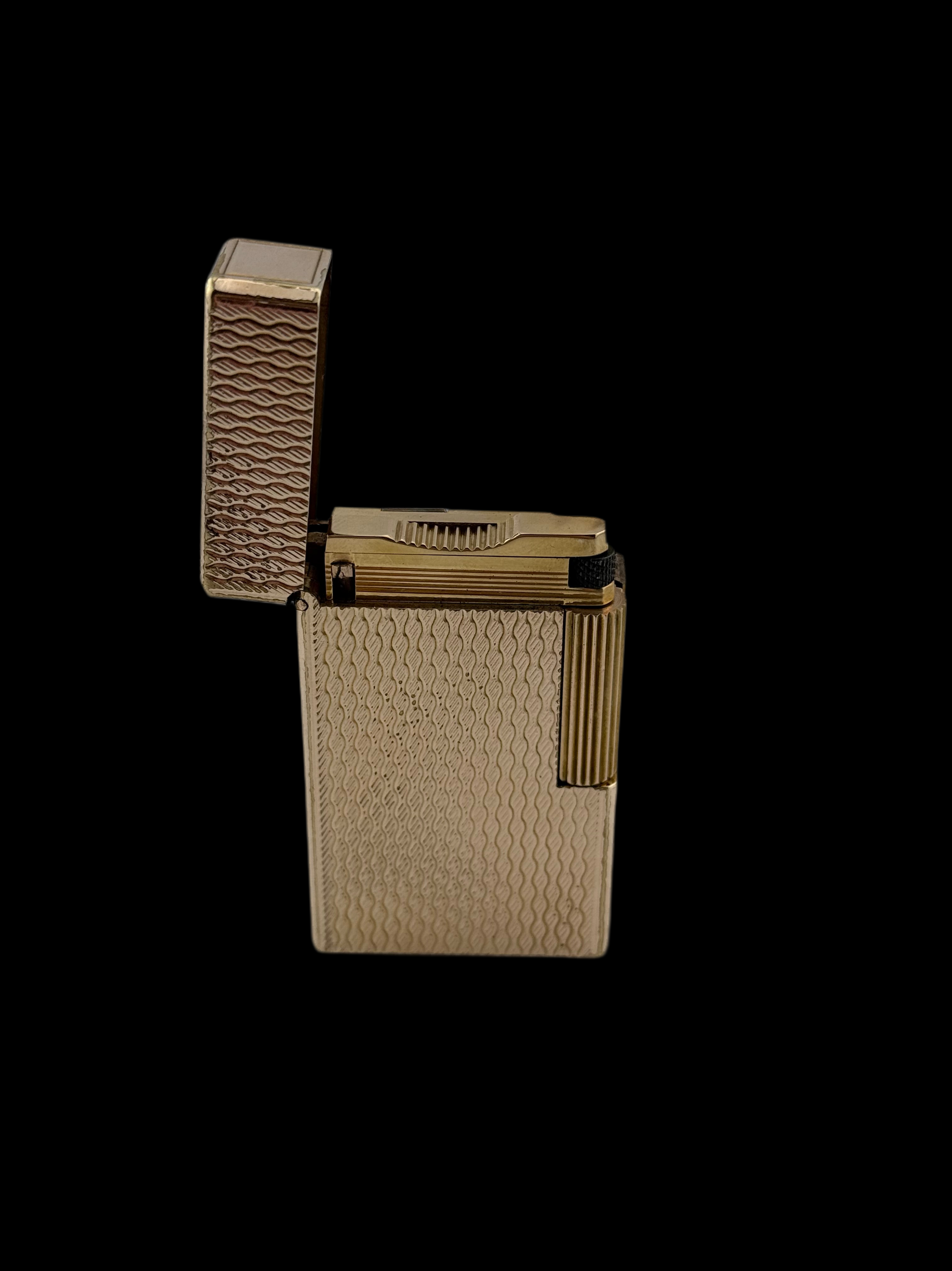 Here we present for sale a beautiful 1980s St DuPont lighter which features a beautiful engine turned gold plated case. This piece is in fantastic condition and is fully working.