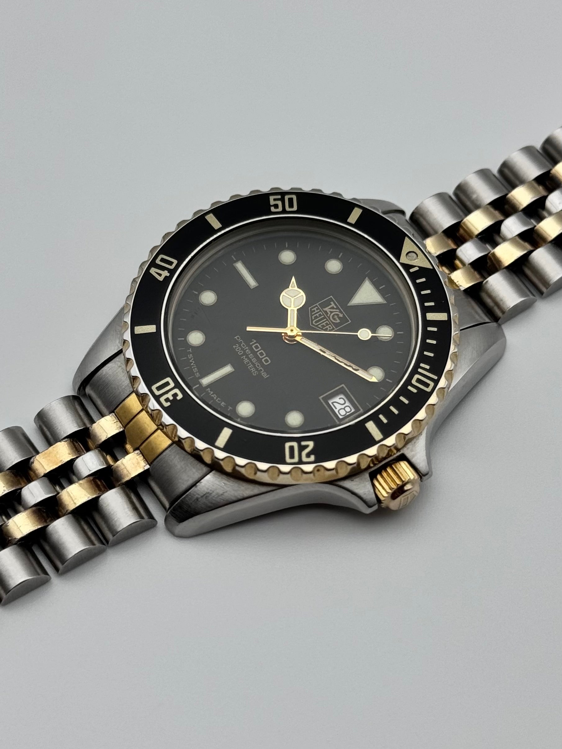 We have for sale this lovely and affordable vintage Tag Heuer Professional 1000 from the mid 1980s. The watch is in nice condition for its age and shows general signs of wear.