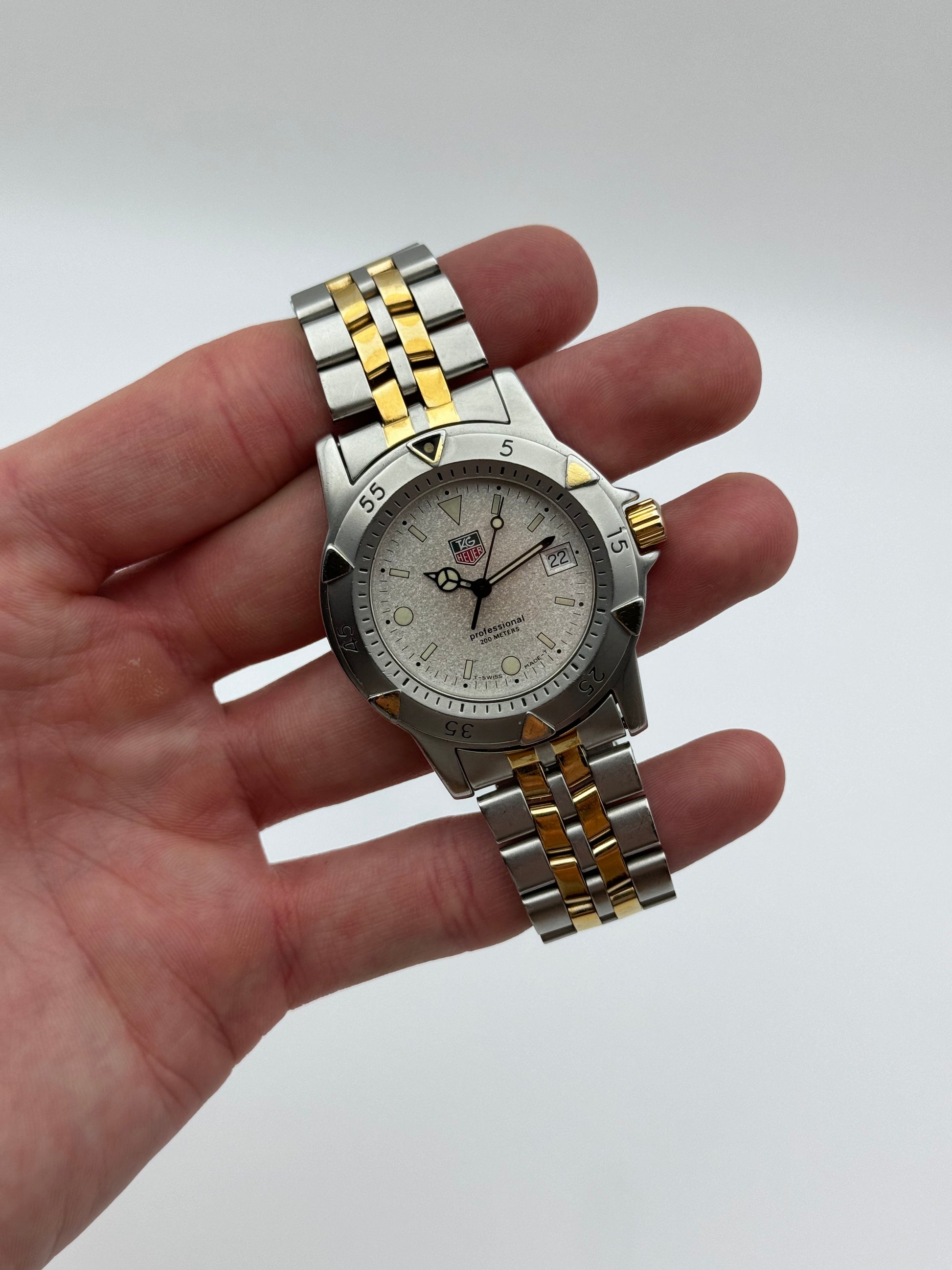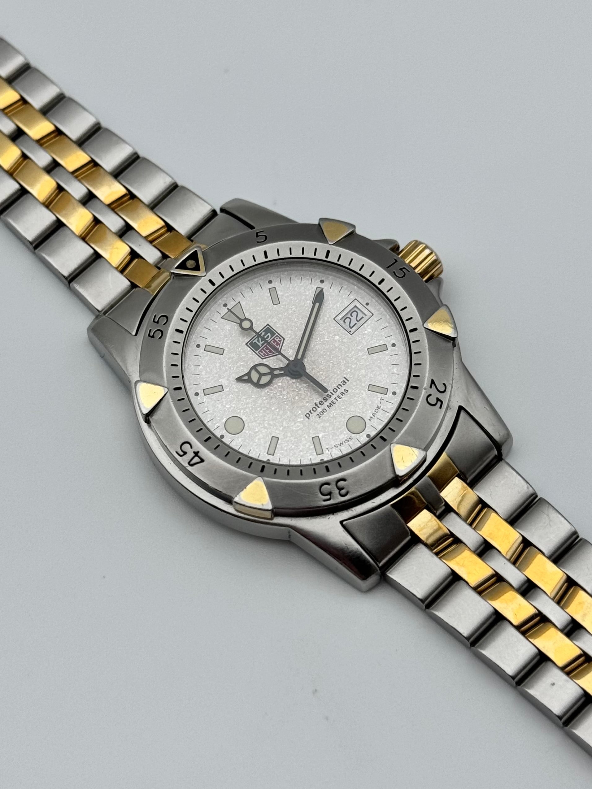 We have for sale this lovely and affordable vintage Tag Heuer Professional 200 from the 90s. The watch is in nice condition for its age and shows general signs of wear.