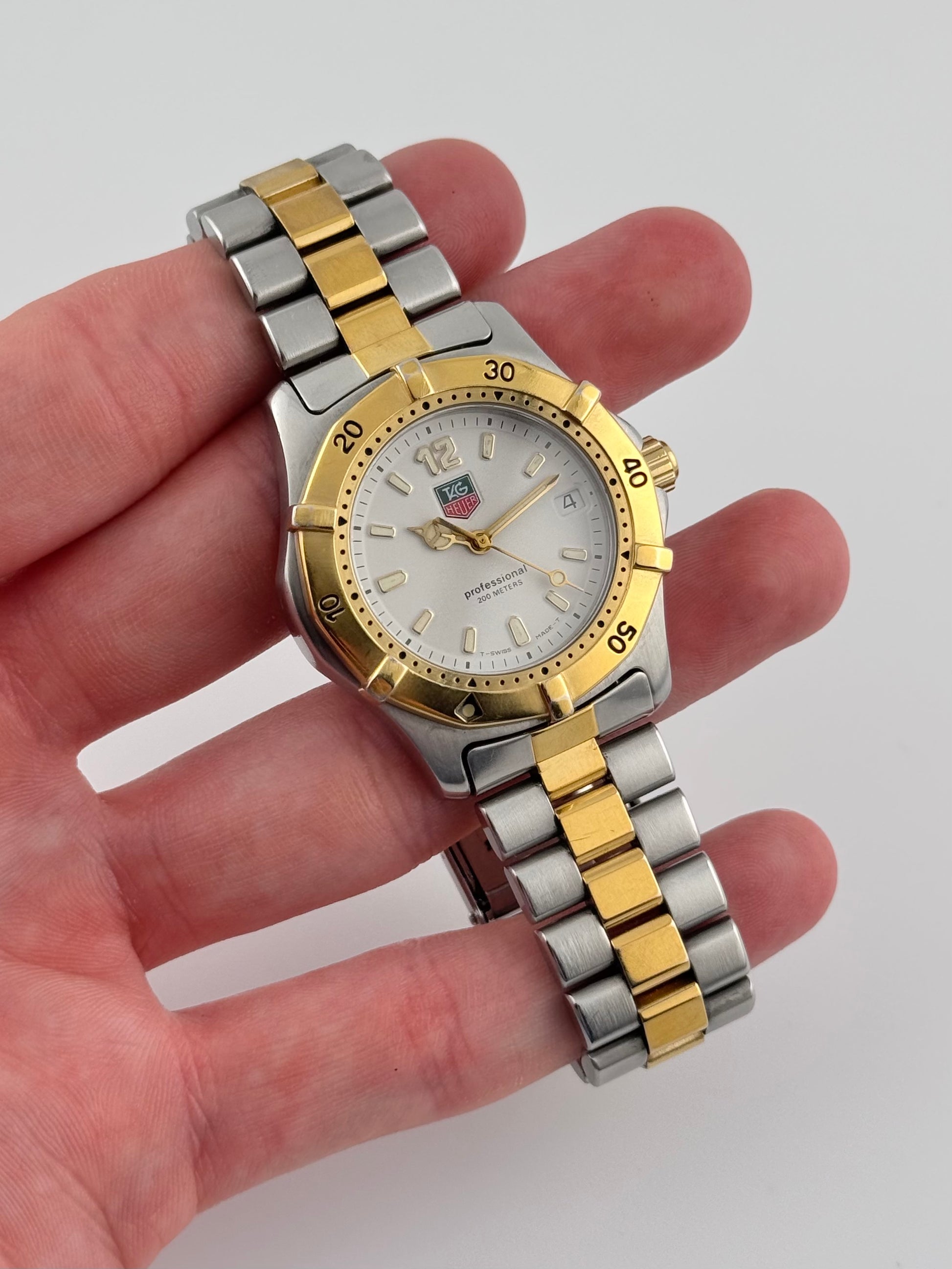 We have for sale this lovely and affordable vintage Tag Heuer Professional 200 from the 90s. The watch is in nice condition for its age and shows general signs of wear.