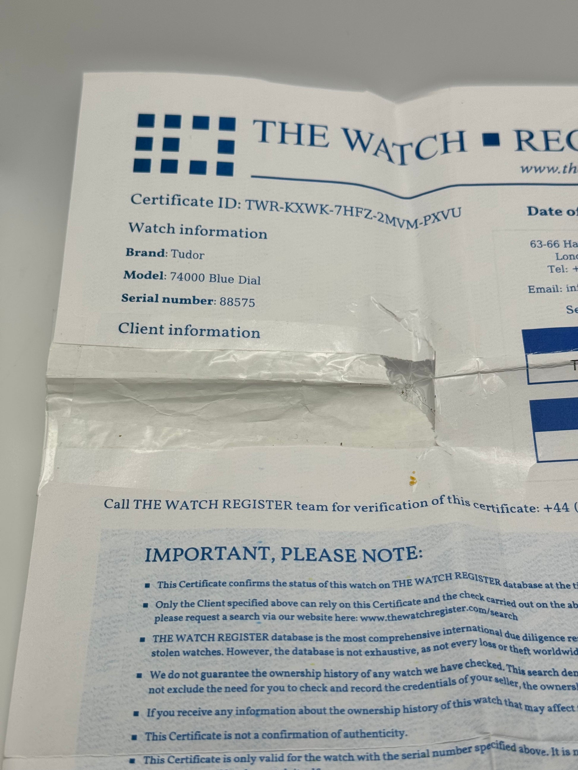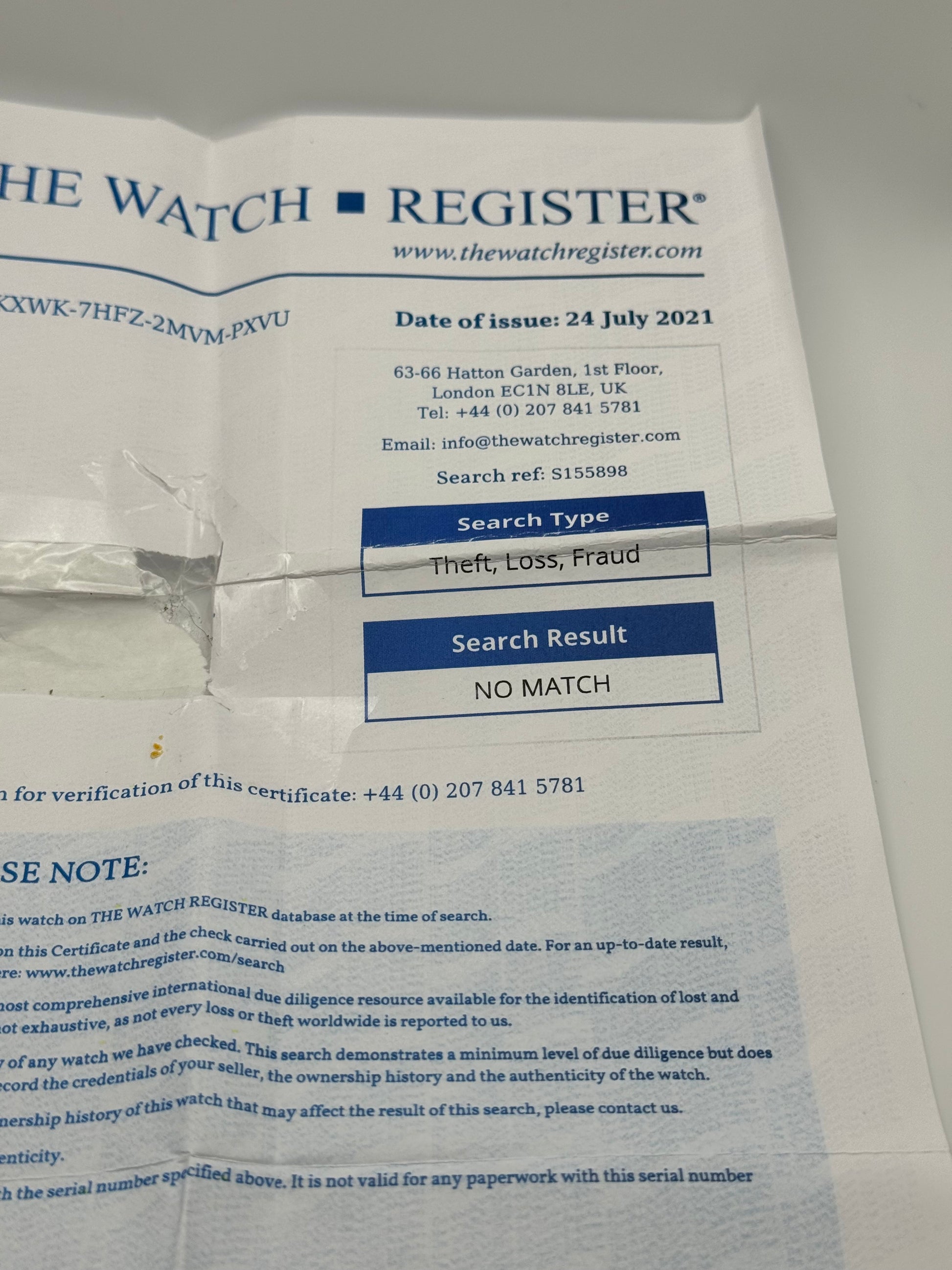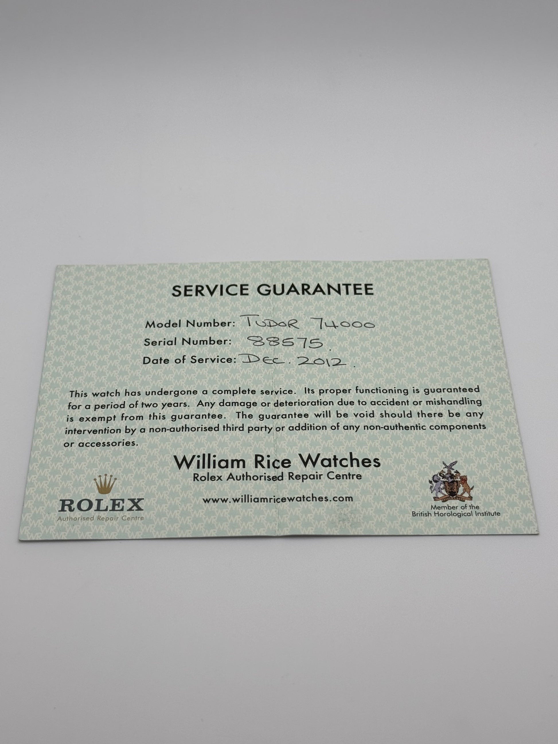 - Service receipt from Rolex Authorised service centre