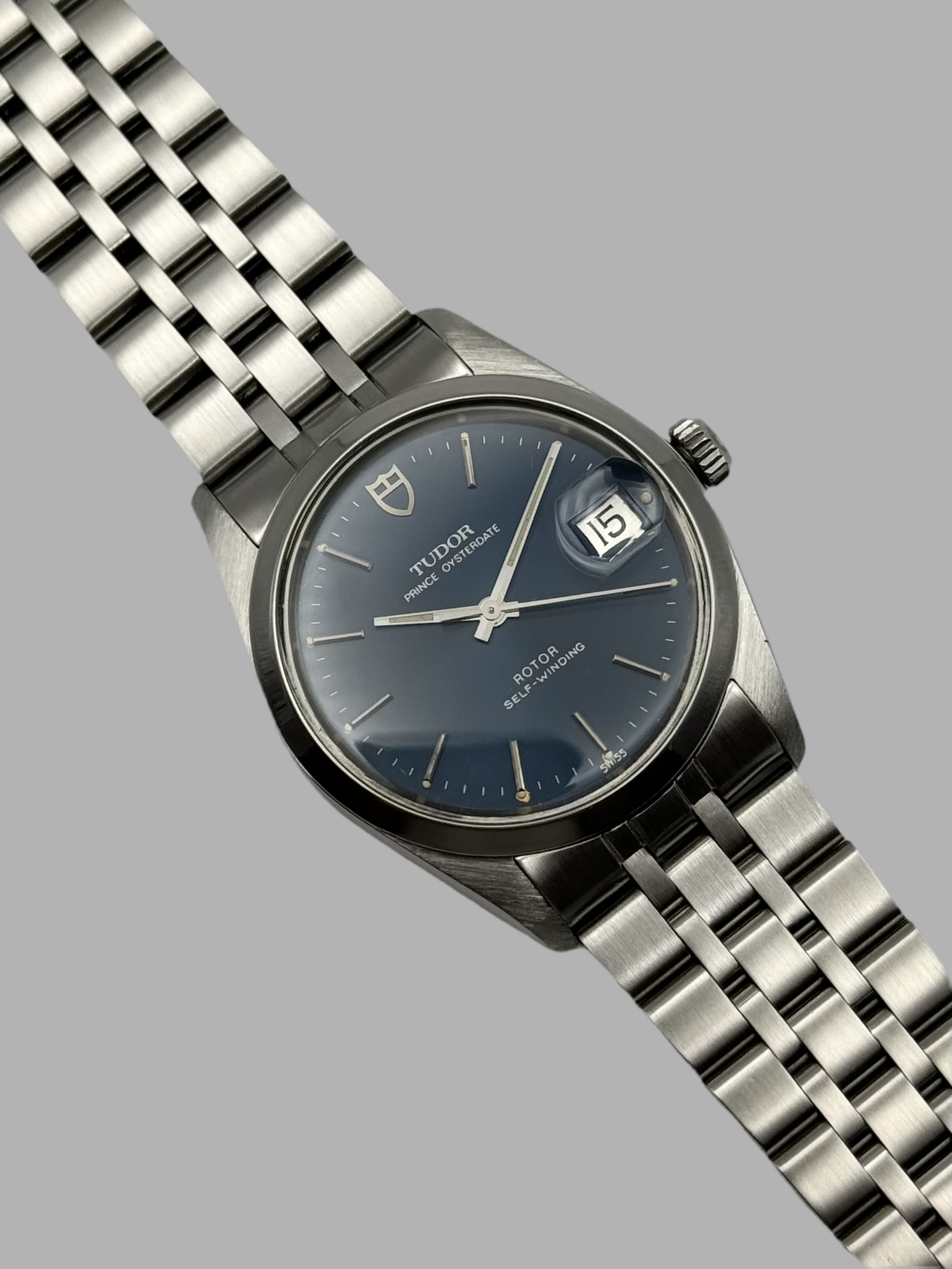 This is an absolutely incredible Tudor Prince Oysterdate from 1978. This particular model features stunning deep blue dial which hosts a fully functional date complication. This Tudor also features a Rolex made back case and crown which are all Rolex marked which is due to Tudor having been the sister company of Rolex.